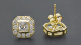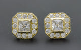 Real 10K Solid Yellow Gold 8.8mm Men's Micro CZ Asscher Cut Stud Earrings 2.0gr