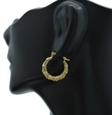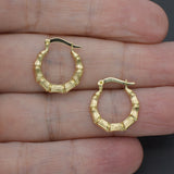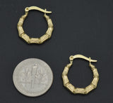 Real 10k Solid Yellow Gold Bamboo Hoop Earrings 18.1mm