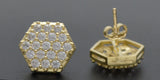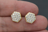 Real 10K Solid Yellow Gold Mens Shiny Halo Octagon Shaped CZ Charm Stud Earrings