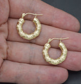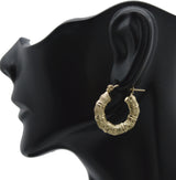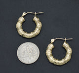 Real 10K Solid Yellow Gold Shiny 20mm Round Bamboo Hollow Hoop Earrings 1.9gr