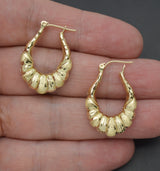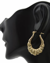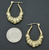 Real 10K Solid Yellow Gold Shiny 28.4mm Graduated Oval Shrimp Hoop Earrings 2.4gr