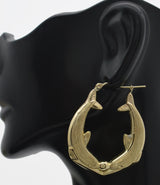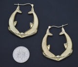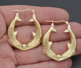Real 10K Solid Yellow Gold Shiny Kissing Dolphin Love Hoop Earrings 4.3 grams