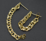 Real 10K Solid Yellow Gold Endless Charm Rolo Chain Long Drop hoop Earrings