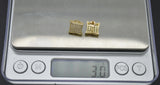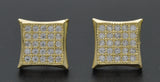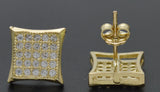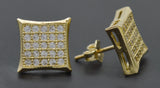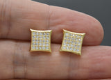 Real 10K Yellow Gold 10mm Concave Square Pave CZ Stud Earrings 3.0gr Men-Women