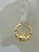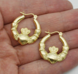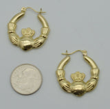 REAL 10K Yellow Gold 25mm Claddagh Hoop Earrings 2.8gr