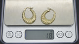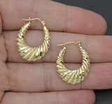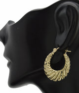 Real 10K Yellow Gold 25mm Hollow Swirl Shrimp Diamond Cut Hoop Earrings 1.8gr