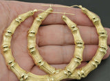 REAL 10K Yellow Gold 3" 75mm Large Graduated Bamboo Hoop Earrings