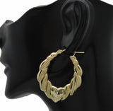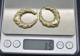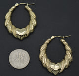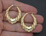 Real 10K Yellow Gold 35mm Bamboo Heart Graduated Diamond Cut Hoop Earrings 3.5gr