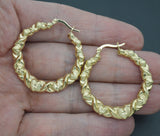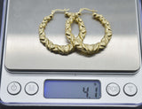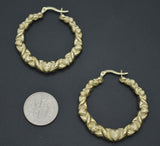 Real 10K Yellow Gold 36.3mm Twisted Heart Diamond Cut Hoop Earrings 4.1gr