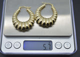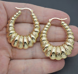 Real 10K Yellow Gold 41.1mm Graduated Puffed Diamond Cut 5.7gr Hoop Earrings
