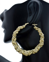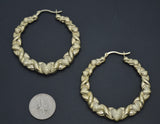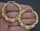 Real 10K Yellow Gold 50.1mm Twisted Heart Diamond Cut 6.6gr Hoop Earrings