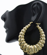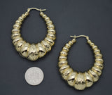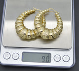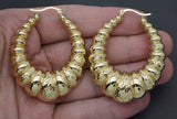 Real 10K Solid gold Yellow 52mm Shrimp Puffed Diamond Cut Hoop Earrings 9gr