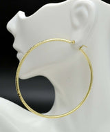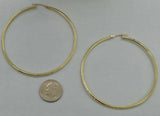 REAL 10K Yellow Gold big Large Diamond Cut Hoop Earrings 2 1/2" 2mm X 65mm 4g