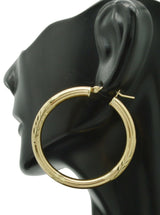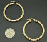REAL 10K Yellow Gold big Large hoop Diamond Cut Earrings 40mm x4mm 3.7gr