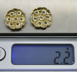 Real 10K Yellow Gold C Z Round Nugget Stud Diamond Cut Earrings 15mm