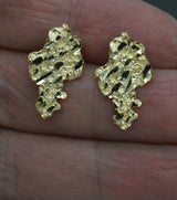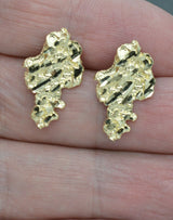 Real 10K Yellow Gold Diamond Cut Nugget Stud Earrings 20.3mm