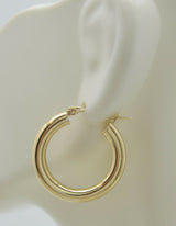 Real 10K Yellow Gold Hoop Shiny Earrings 25mm x4mm 2.3gr