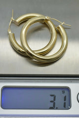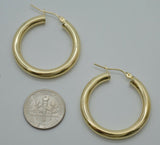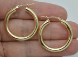 Real 10K Yellow Gold Hoop Shiny Earrings 30mm x4mm 3.1gr