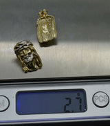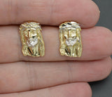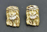 Real 10k Yellow Gold Jesus Head Diamond Cut Stud Earrings 2.7gr
