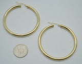 Real 10K Yellow Gold Large Hoop Shiny Earrings 50mm x4mm 5.2gr