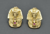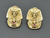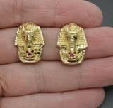 Real 10K Yellow Gold Pharaoh Egyptian King Stud Earrings 3.8gr