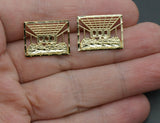 Real 10k Yellow Gold Rectangular Diamond Cut Last Supper Stud earrings 2.5gr