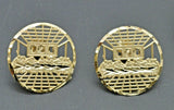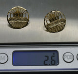 Real 10k Yellow Gold Round Diamond Cut Last Supper Stud earrings 2.6gr