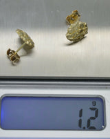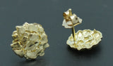 Real 10K Yellow Gold Round Diamond Cut Nugget Stud Earrings 10.3mm