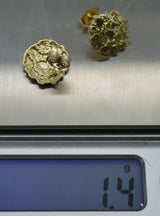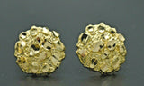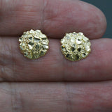 Real 10K Yellow Gold Round Diamond Cut Nugget Stud Earrings 12.1mm