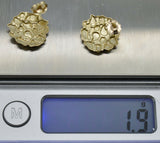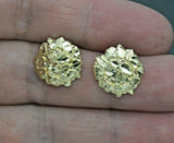Real 10K Yellow Gold Round Diamond Cut Nugget Stud Earrings 15mm