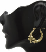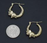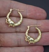 Real 10K Yellow Gold Shiny Lucky Elephant Shape Diamond Cut Hoop Earrings 1.7gr