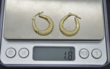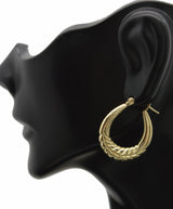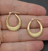 Real 10K Yellow Solid Gold 24.1mm Shrimp Leaf Shiny Hoop Earrings 1.8 grams