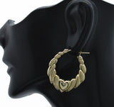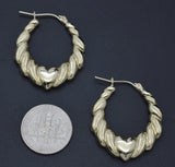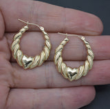Real 10K Yellow Solid Gold 28.8mm Shrimp Heart Shiny Hoop Earrings 2.9 grams