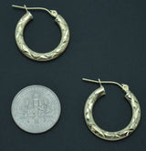 Real 10k Yellow Solid Gold Diamond Cut Shiny Small Hoop Earrings 20.6mm 1.4 gr
