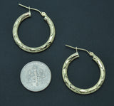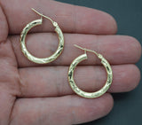 Real 10k Yellow Solid Gold Diamond Cut Shiny Small Hoop Earrings 25mm 1.6 gr