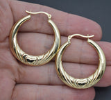 Real 10K Yellow Solid Gold Hollow Love Hoop Earrings 37.6 mm 3.9 gr