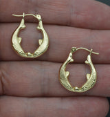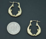Real 10K Yellow Solid Gold Kissing Dolphin Earrings 21.6 mm 1.5 gr