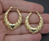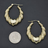 Real 10K Yellow Solid Gold Shiny 35.4mm Shrimp Heart Hoop Earrings 4.0 grams