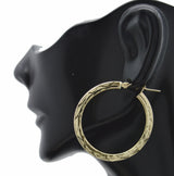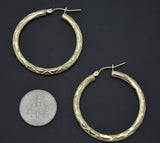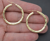 Real 10k Yellow Solid Gold Shiny Big Large Diamond Cut Hoop Earrings 35mm 2.3 gr