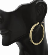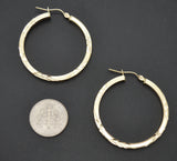 Real 10k Yellow Solid Gold Shiny Diamond Cut Big Large Hoop Earrings 2.7 gr