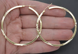 Real 10k Yellow Solid Gold Shiny Diamond Cut Big Large Hoop Earrings 55mm 4.3 gr