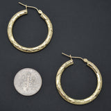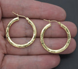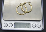 Real 10k Yellow Solid Gold Shiny Diamond Cut Charm Hoop Earrings 30mm 2.0 gr