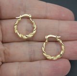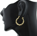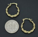 Real 10K Yellow Solid Gold Swirl Rope Hoop Earrings 1.3 grams