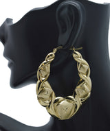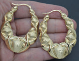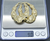 Real Solid 10K Satin Yellow Gold XO Love Graduated Diamond Cut 9gr Hoop Earrings