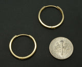 14K Solid Yellow Gold 20mm x 2mm Plain Huggie Hoop Earrings