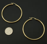 14k Solid Yellow Gold big Large High Polished hoop Earrings 50mm x 3MM 4gr