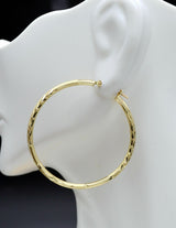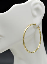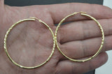 14k Solid Yellow Gold big Large hoop Diamond Cut Earrings. 45mm x2MM 2.6GR