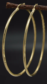 14k Solid Yellow Gold big Large hoop Diamond Cut Earrings. 70mm x2MM 4.2GR