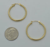 14k Solid Yellow Gold shine Hoop Earrings. 25 x 2MM