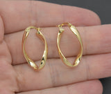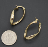 Real 14K Solid Yellow Gold 26.7mm Twisted Oval Hinged Hoop Earrings 2.3gram